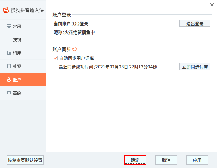 注销再次登陆,就可以看到输入法正常工作了,可以登陆和同步词库